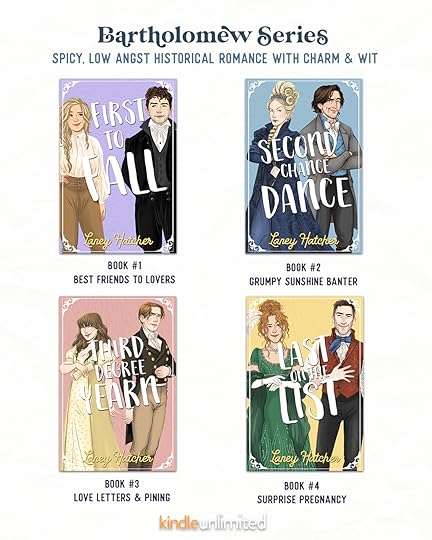 If you're in your historical romance era, you should definitely check out my Bartholomew series. This collection of four full-length standalone novels is charming and funny and mildly steamy. Perfect for contemporary readers who are new to histrom! Available in Kindle Unlimited! https://laneyhatcher.com/laney-hatche...