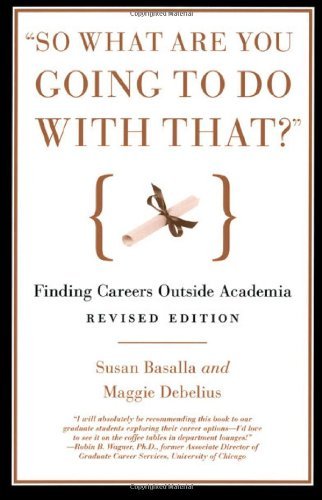 Graduate schools churn out tens of thousands of Ph.D.’s and M.A.’s every year. Half of all college courses are taught by adjunct faculty. The chances of an academic landing a tenure-track job seem only to shrink as student loan and credit card debts grow. What’s a frustrated would-be scholar to do? Can he really leave academia? Can a non-academic job really be rewarding—and will anyone want to hire a grad-school refugee?With “So What Are You Going to Do with That?” Susan Basalla and Maggie Debelius—Ph.D.’s themselves—answer all those questions with a resounding “Yes!” A witty, accessible guide full of concrete advice for anyone contemplating the jump from scholarship to the outside world, “So What Are You Going to Do with That?” covers topics ranging from career counseling to interview etiquette to translating skills learned in the academy into terms an employer can understand and appreciate. Packed with examples and stories from real people who have successfully made this daunting—but potentially rewarding— transition, and written with a deep understanding of both the joys and difficulties of the academic life, this fully revised and up-to-date edition will be indispensable for any graduate student or professor who has ever glanced at her CV, flipped through the want ads, and wondered, “What if?” “I will absolutely be recommending this book to our graduate students exploring their career options—I’d love to see it on the coffee tables in department lounges!”—Robin B. Wagner, former associate director for graduate career services, University of Chicago