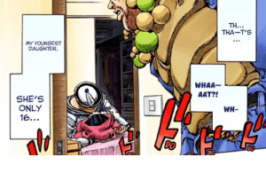Something about this part is just not working for me so far. It might be a lack of connection to the characters, like I'm still trying to get a feel for them. The family setup seems intriguing, but the stand "battle" between Josuke and Daiya was mostly awkward and uncomfy.