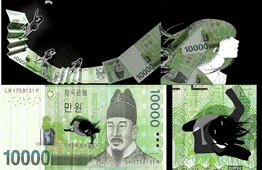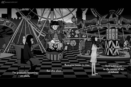 The story didn't appeal to me in the initial chapters. It felt bland and monochromatic just like the art. But then the colours changed. I could see the green color of the won note. I could see the almost pink shade when she was reminded of the way she saw her amusement park in her childhood. Everything felt vivid and the tugging in my heart was too much to bear. Then slowly the magic unraveled.