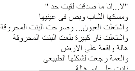 اعتراضي ليس على ان كتاباتها باللغة العامية ولكن القصة بأشخاصها و أحداثها حقاَ سيئة بمعنى الكلمة فهي لا تنتمي لأى نوع من انواع الأدب أطلاقاَ إنها تصلح ان تكون قصة للأطفال لا ان تكون قصة مرعبة