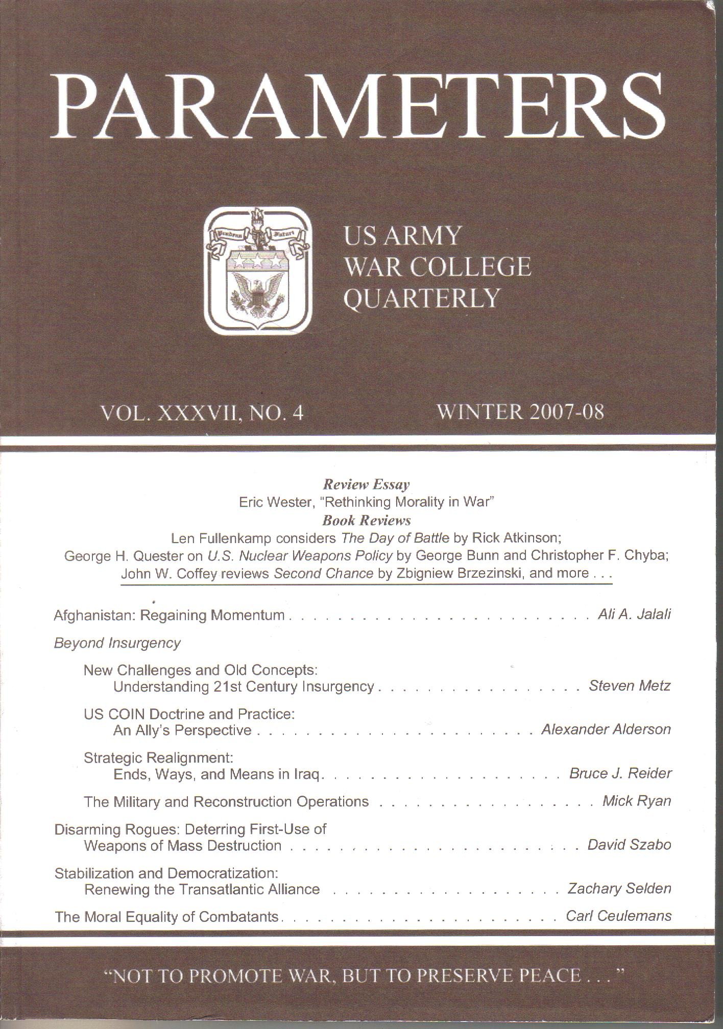 Parameters: Winter 2007 - 2008 Issue Afghanistan: Regaining Momentum / US COIN Doctrine and Practice: An Ally’s Perspective Strategic Realignment: Ends, Ways, and Means in Iraq Disarming Rogues: Deterring First-Use of WMD / MORE