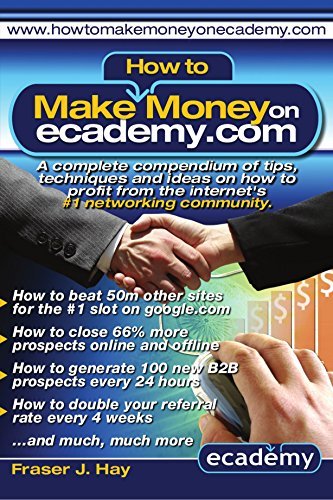 A complete compendium of tips, techniques and ideas on how to profit from the internet's #1 networking community including how to beat 50m other sites for the No1 slot on google.com; how to close 66% more prospects online and offline; how to generate 100 new B2B prospects every 24 hours; how to double your referral rate every 4 weeks ... and much, much more. Allow award winning, Scottish entrepreneur Fraser J. Hay to give you a unique and fascinating insight into the modern methods of business networking and one of the internet's best loved networking communities, to help you generate leads, enquiries, prospects and referrals for your products and services. I can't recommend this book enough. It is a simple must have for every entrepreneur serious about Business Networking and succeeding on Ecademy.com. If you follow Fraser's system to the letter, you can and will generate leads, referrals, prospects and sales whilst growing your business network of contacts, regardless of the sector you operate in, or the products and services you sell. It is exceptional. Thomas Power, Chairman, Ecademy.com A step-by-step guide that anyone can follow (even me). I love the summaries at the end of each section making the whole process foolproof. I'll be recommending this to anyone that is interested in improving their networks and net worth in the coming months and years. Simon Phillips, Author, Consultant, Trainer Fraser generates a fantastic range of brilliant thoughts and ideas. His book How to Make Money on Ecademy is a great example of how he focuses his business expertise to help people on Ecademy. Great ideas, great man! Dr. Martin Davies, Founder, NRG Business Networks