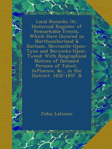 Local Records; Or, Historical Register of Remarkable Events, Which Have Occured in Northumberland & Durham, Newcastle-Upon-Tyne and ... Influence, &c., in the District. 1832-1857. B