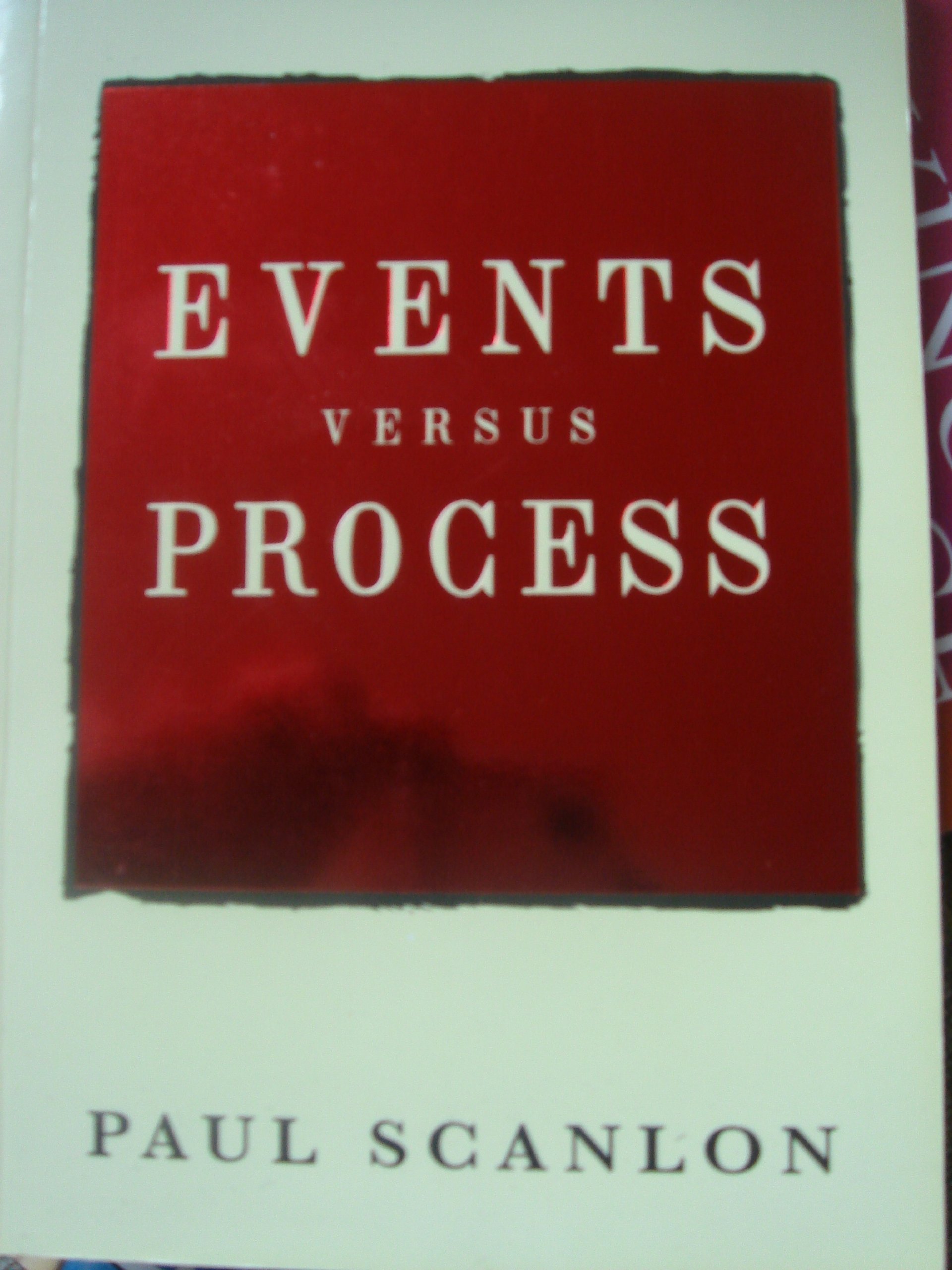 "Events Versus Process" is a Christian lifestyle book by Paul Scanlon which looks at the need to live a Christian life based on process, not focusing on events. It explains why Believers who share very similar experiences can end up living such radically different Christian lives. It also provides practical wisdom to ensure we all live the productive, fruitful lives that God intended.