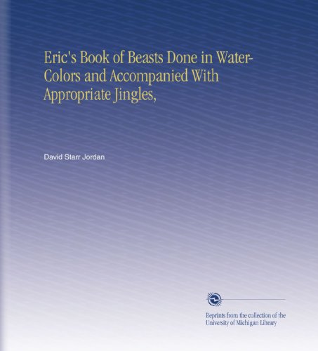 It ends with this explanation: "AND SO HERE ENDETH "ERIC'S BOOK OF BEASTS" WHICH DAVID STARR JORDAN DID WITH HIS PEN AND PAINT BOX, BUT THE PICTURES WERE TOO BEE-YOUTIFUL AND 'SPENSIVE; SO HE GOT HIS FRIEND, SHIMADA SEKKO, TO TRANSLATE THEM INTO CALM BLACK AND WHITE. PAUL ELDER AND COMPANY OF SAN FRANCISCO HAVE MADE THEM INTO A BOOK, WITH GREAT GLEE. AT THEIR TOMOYE PRESS JOHN SWART DESIGNED THE TYPE FACE, AND JEAN OLIVER HELPED WITH THE DECORATIONS—AND IT WAS ALL FINISHED AND SENT OUT INTO THE WORLD FOR GOOD BOYS AND GIRLS IN THE MERRY MONTH OF MAY, 1912"