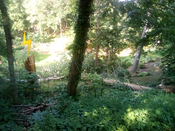 The night of June 30, after completing the final episode of The Chosen: Last Supper, there was a lightning storm in town. While trying to get some rest, there was a big crack outside and something seismic fell. Based on the evidence in the morning and logical reasoning, a giant tree was split just in the yard next door, fell down and knocked another ginormous tree down completely ripping out the roots, and broke the metal fence. I'm fairly certain a tree less than 30 yards away was