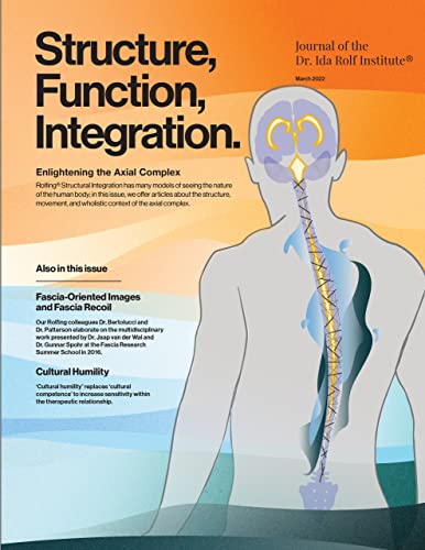 This year marks the 50th volume of Structure, Function, The Journal of the Dr. Ida Rolf Institute®, and the first issue of the year, the March 2022 issue, focuses on the axial complex. Rolfers® are well known for working to alleviate back pain, and the axial complex articles are a window into the various ways of how this is done. From Mary Bond’s article “Your Spine Is Not a Column,” where the reader is invited to do movement explorations that free the sacrum, to the interview with John deMahy about his structural algorithm for the spine, readers will be treated to a range of information about how to enlighten their spine and the spines of their clients. Check out the article by the legacy faculty member, Jan H. Sultan, presenting how embryology informs his body reading of the neurocranium, spine, and sacrum. Speaking of embryology, this issue also has our ongoing column Letter from the Embryo, where Konrad Obermeier takes the reader on a journey “Home, Straight Home.” And our other column, Fascia Insights, features an interview with researcher Dr. Thomas Rosenkilde Rasmussen about his work directly measuring the third rhythm of the skull. The Perspectives section of this issue has quite a few offerings, two articles inspired by the 2016 Fascia Research Summer School, a discussion about inflammation in the context of manual therapy, an interview with Advanced Training faculty member Pierpaola Volpones, and a discussion about cultural humility in the therapeutic relationship.
