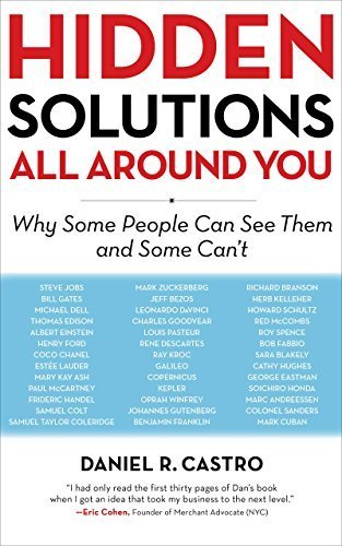 How is it that we get overwhelmed by problems and struggle to find a solution, when others do not? If you want to find out you need to check out “Hidden Solutions All Around You” by Daniel R. Castro. As a retired business analyst/accountant, this book intrigued me right away, in hopes it was just not another repetitive business self-help book, like so many out there, which only point out the basics or the obvious. By the end of the introduction, I knew this was not the case. Castro begins by opening the reader’s mind so that they can realize how vast the universe of possibilities really is. Once realizing this, it is impossible to go back, as the reader will understand the amount of solutions to any problems are just as vast. Once the mental wall we all build around ourselves crumbles, the reader will discover a new world of life changing ideas and point of views.