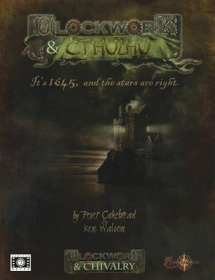 Horror Roleplaying in the world of Clockwork & Chivalry "Then she did confesse that she gained her powers from a Devill which did come to her out of the baye on moonless nights. And upon examination, we did find the markes of evill upon her, for she bore scales like unto a fish about her bodie. And so was she hanged as a witche, and upon the scaffolde she did crie out "Ia! Ia! Cthulhu fhtagn!" and those who did witnesse this were sore afraide, but her Devill answered her not, and she did die in that place." - Fear-the-Lord Grimshaw, Witch Finder, 1645 England has descended into civil war. The earth is tainted by alchemical magick. Giant clockwork war machines lumber across the land. In the remote countryside, witches terrorise entire villages, while in the hallowed halls of great universities, natural philosophers uncover the secrets of nature. War, plague and religious division make people's lives a constant misery. But even greater threats exist. Witches whisper of the old gods. Royalist alchemists pore over John Dee's forbidden translation of the Necronomicon, dreaming of powers that will allow them to win the war. Parliamentarian engineers consult with creatures from beyond the crystal spheres and build blasphemous mechanisms, unholy monuments to their alien overlords. Vast inter-dimensional beings seek entry into the world, while their human servants, corrupted, crazed and enslaved, follow the eldritch agendas of their hidden masters. Clockwork & Cthulhu brings the horror of H.P. Lovecraft's Cthulhu Mythos to the 17th century alternate historical fantasy world of Clockwork & Chivalry. Inside you will Mythos creatures and gods, cults and secret societies for 17th century England. New rules for Mental Damage in the Renaissance system. Three complete scenarios which take the Adventurers into the rain-shrouded Coniston Fells, the shifting sands of Morecambe Bay, and the corridors of the Royalist court at Oxford. You don't need to buy anything else to play Clockwork & Cthulhu - just download the free Renaissance D100 rules from www.clockworkandchivalry.co.uk! But you'll get more out of the setting, and more character options, if you have access to the Clockwork & Chivalry 2nd Edition Core Rulebook.