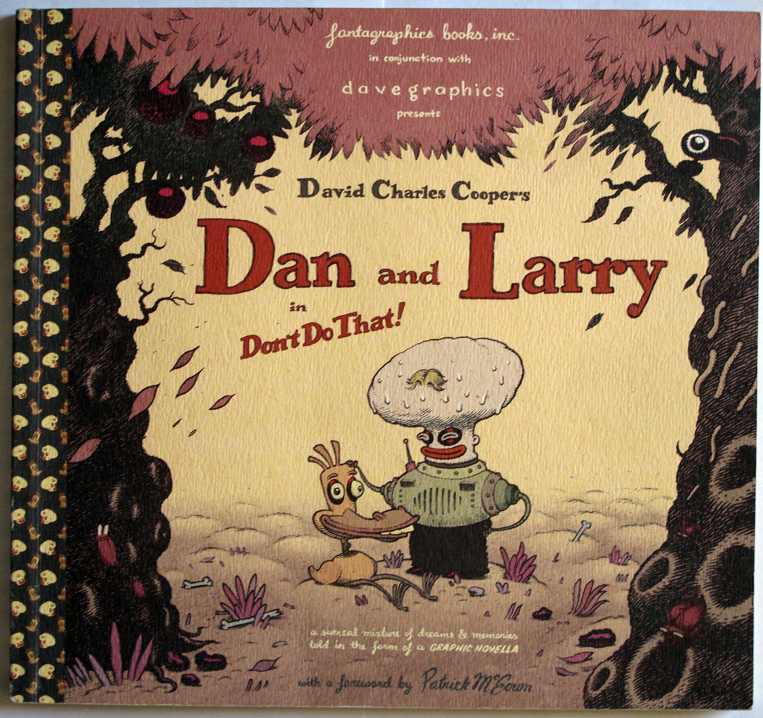 A highly uncomfortable and thinly-veiled portrait of adolescence, Dan & Larry is a story of lost innocence as told through a surreal landscape and anthropomorphized "funny animals" cast as children, all rendered with Cooper's impeccable composition and linework. The story addresses themes of sexual and verbal abuse with unflinching candor, while Cooper's dark sense of humor resonates throughout his wildly imaginative visuals. Cooper is also an accomplished animator, creating designs for animated television series like Matt Groening's Futurama.