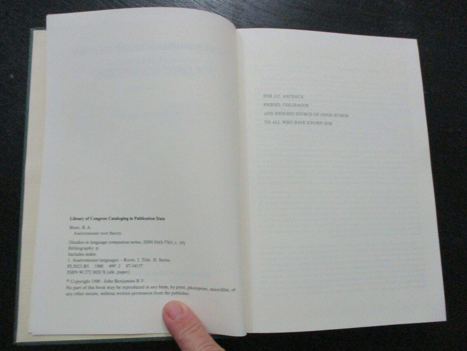 Austronesian root theory, an essay on the limits of morphology, Robert A. Blust, hard cover, 190 pp, English edition, published in Holland, 1988. spine, cover and inner pages are in a very good condition with minor signs of use . In case of buying more then 1 item, shipment will be combine. .Please look at the pictures to get the right impression.