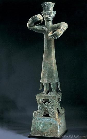 (*) All the images used in this review are of objects retrieved from the Sanxingdui site. I am deliberately oversimplifying the discovery history and am ignoring the Neolithic precursor of the Sanxingdui culture, namely the Baodun culture, as well as the corresponding Stone Age culture in the Yellow River valley. The Sichuan basin had much smaller walled cities already in the second half of the third millennium BCE.
