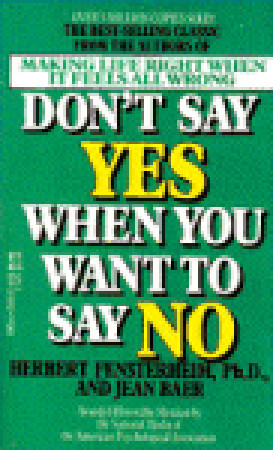 "Don't say Yes when you want to say No" a book on Assertive Training. Seriously, I bought it for its title but this book has more than that No. When you start reading you may find it uninteresting because of subjects it talks about. It has some good ideas about 'reinforcers', 'assertion vs aggression', 'goal orientation' and lastly 'being assertive at job', these are common ideas and one might find it intriguing. I skipped one chapter that was centered on 'get thin' because I already don't like myself being skinny. The book has a chapter 'the problem of sexual variants'; this chapter has helped me to understand what Homosexuality and LGBT communities actually are. I know you can not talk about such subjects, as they are sensitive, in Indian society publicly but, at last, it was good for my knowledge. Every book helps you to step toward a liberal approach.