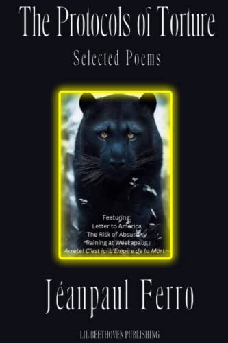 'Lil Beethoven Publishing is proud to bring you THE PROTOCOLS OF TORTURE, Selected Poems, 2011 by 10-time Pushcart Prize nominee Jéanpaul Ferro. Featured on NPR , Contemporary American Voices , Columbia Review , Emerson Review, Connecticut Review, Portland Monthly , Arts & Understanding Magazine , The Providence Journal , Saltsburg Review, Hawaii Review, and others; his collection of poetry, Essendo Morti – Being Dead (Goldfish Press, 2009), was nominated for the 2010 Griffin Prize in Poetry. Additionally, his collection, Jazz (Honest Publishing, 2011), was also nominated for both the 2012 Kingsley Tufts Poetry Prize and the 2012 Griffin Prize in Poetry. He was born in Scituate, Rhode Island in 1967.