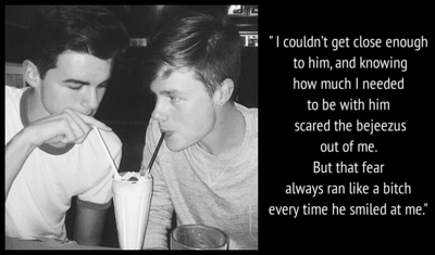 I looked over at him and felt an ache in my chest when I realized how much I liked him. I had never felt like I did with Kyle. I couldn’t get close enough to him, and knowing how much I needed to be with him scared the bejeezus out of me. But that fear always ran like a bitch every time he smiled at me.