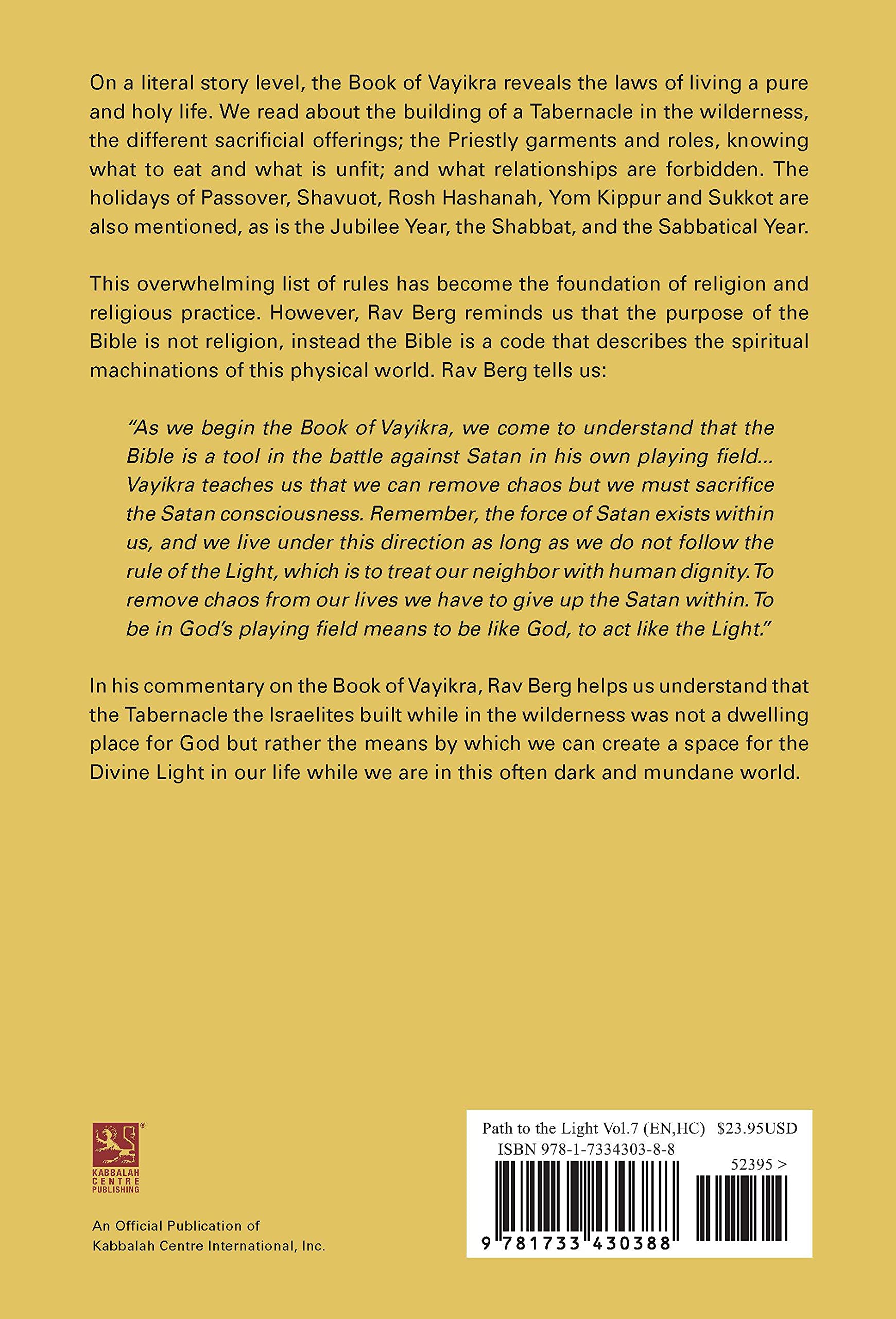On a literal story level, the Book of Vayikra reveals the laws of living a pure and holy life. We read about the building of a Tabernacle in the wilderness, the different sacrificial offerings; the Priestly garments and roles, knowing what to eat and what is unfit; and what relationships are forbidden. The holidays of Passover, Shavuot, Rosh Hashanah, Yom Kippur and Sukkot are also mentioned, as is the Jubilee Year, the Shabbat, and the Sabbatical Year. However, Rav Berg reminds us that the purpose of the Bible is not religion, instead the Bible is a code that describes the spiritual machinations of this physical world. He “The essential reason of sacrifice is not to appease God but to cleanse ourselves; to clean ourselves of corrupted DNA that we brought upon ourselves.”