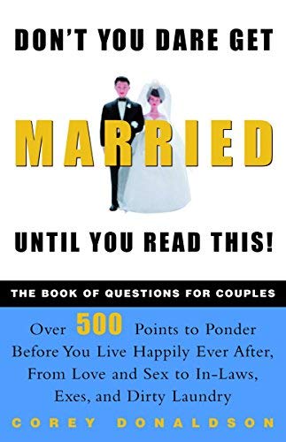 The Book to Read Before You Say "I Do"If you're headed for the altar -- or you're in a serious relationship that could lead to marriage -- you probably already know that issues like love, sex, money, religion, kids, in-laws, and even who has to walk the dog can become potential landmines if you and your partner don't discuss your feelings openly before you take the plunge. Now, Corey Donaldson has put together more than 500 questions -- ranging from playful to provocative -- designed to get you and your partner talking frankly and communicating effectively before you walk down the aisle. Donaldson covers hot topics such * Does it matter to you who earns most of the money?* What does my family do that annoys you?* What is the difference, for you, between love and romance?* What place do you believe religion has in the world?* How long do you want to wait before having children?* If I wanted to move away from our families for work, would you support me?* Who cleans the house?Perfect for couples in the midst of planning their nuptials, a duo considering "I do," or even partners in established relationships who just want to get to know each other again, Don't You Dare Get Married Until You Read This! is a must-have for anyone who wants to make their marriage last.