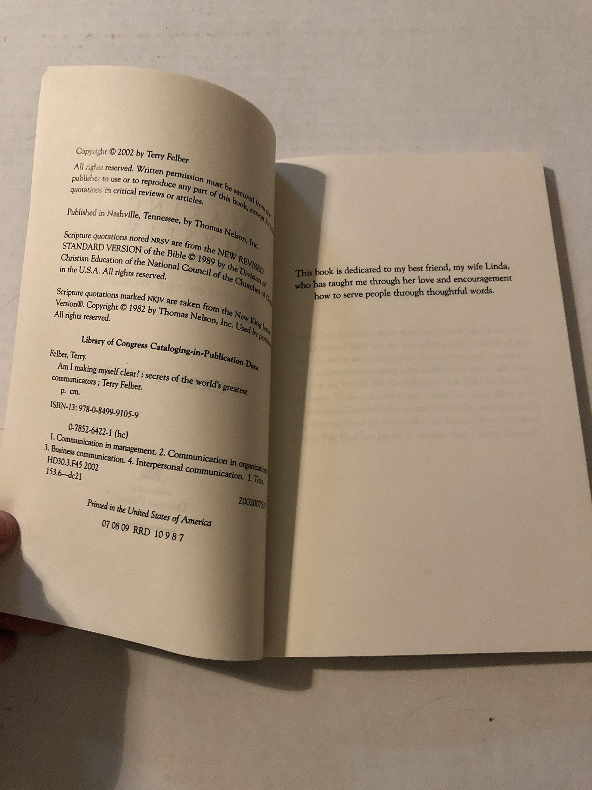 Am I Making Myself Clear by Felber, Terry published by Thomas Nelson Publishers
