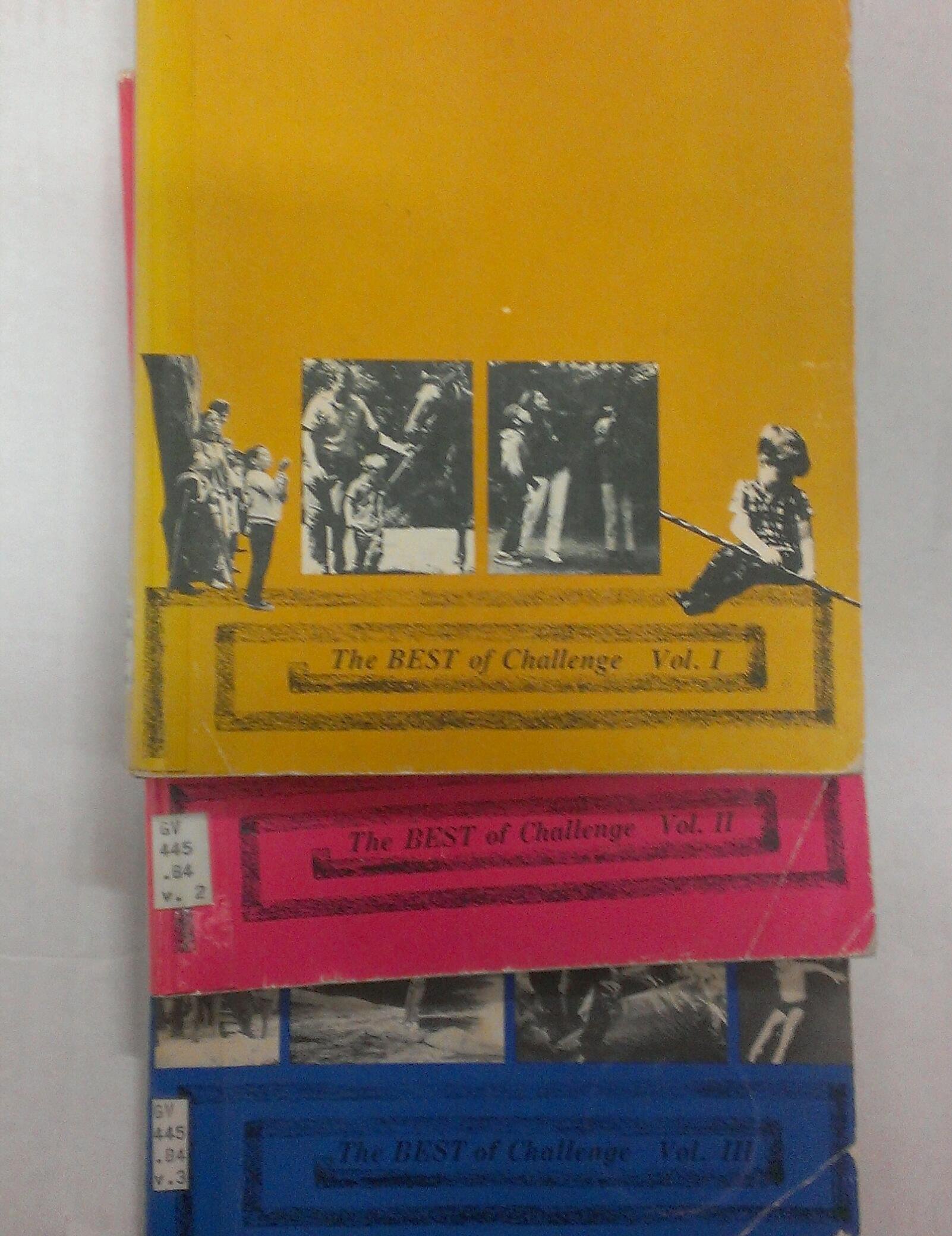 3 VOLUME SET of Challenge Newsletter Anthology- Challenge was a bi-monthly newsletter dealing with physical education, recreation, camping, outdoor, education and related areas for the mentally retarded. The Best of Challenge Volumes also contain a few entries from Outlook, a newsletter dealing with programs for individuals with conditions other than mental retardation such as polio, cerebral palsy, deafness, blindness, amputations, emotionally disturbed and orthopedically handicapped.