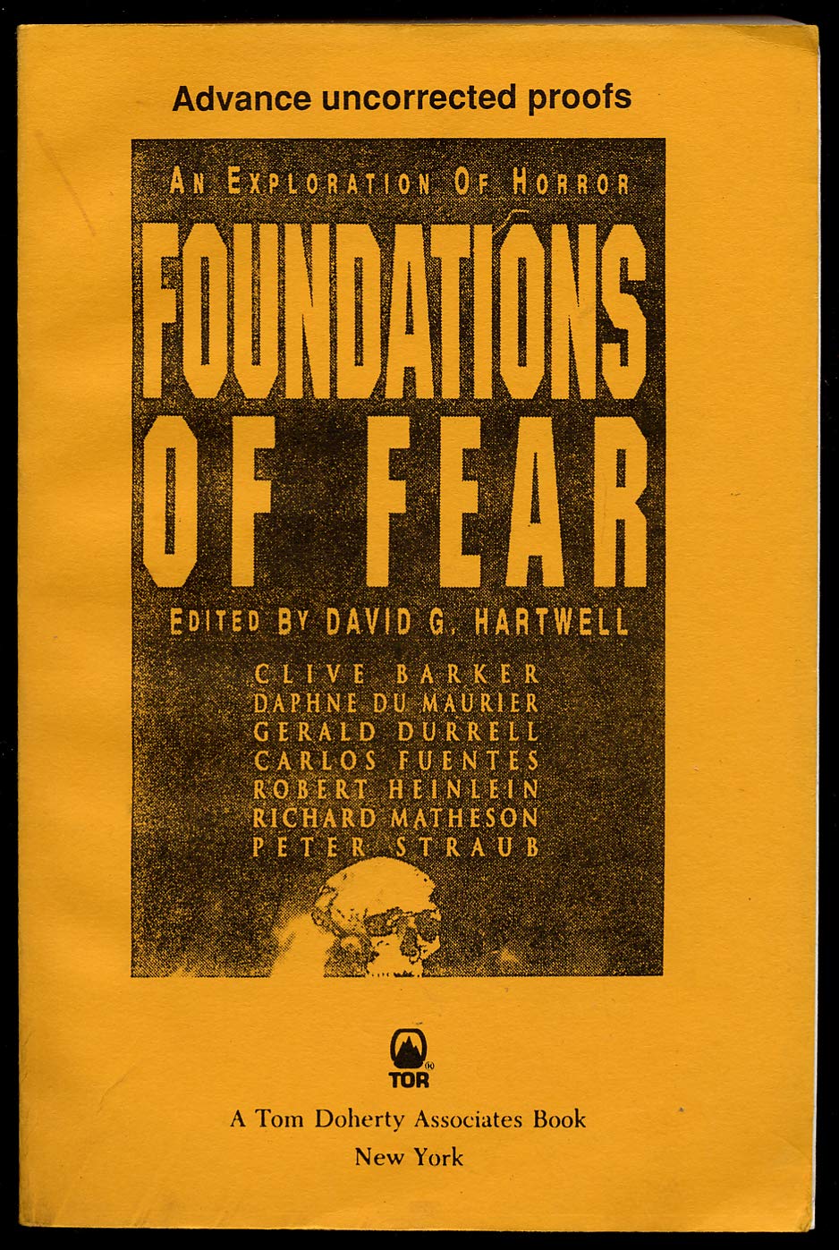 Horror fiction is a special and enduring pleasure, invoking fear and wonder. For centuries, writers have struggled to achieve the sublime through these tales, at times creating works of enduring interest. Horror novels have become one of the major bestselling forms of fiction in recent years, and Hollywood has given us a huge and varied supply of popular films, which has created an audience in the millions for horror. But throughout history, many of the finest achievements in horror have been in short fiction. From these masterpieces have been selected the contents of Foundations of Fear. This anthology presents an international selection of the strongest work by writers such as Clive Barker, H.P. Lovecraft, and Arthur Machen, who have been identified as category horror writers, and by writers such as Carlos Fuentes, Gerald Durrell, and Daphne Du Maurier, whose literary reputations transcend category. For horror in literature cuts across all category boundaries. Thus the reader will find in this volume domestic horror stories by Thomas Hardy, Violet Hunt and Mary Wilkins Freeman; and stories by Robert A. Heinlein and Philip K. Dick, masters of science fiction. The Introduction to Foundations of Fear takes particular note of women writers, who have made important contributions to the development of the horrific in literature; in addition to those already mentioned the collection includes works by Madeline Yale Wynne, Harriet Prescott Spofford, Gertrude Atherton, and others. Foundations of Fear challenges the notion that the supernatural in fiction has in modern times been supplanted by the psychological, the idea that horror is dead. Horror is one of the dominant literary modes of our time, a vigorous and living body of literature that continues to thrill us with the mystery and wonder of the unknown. Contents 1 Introduction (Foundations of Fear) (1992) essay by David G. Hartwell 12 Don't Look Now (1966) novella by Daphne du Maurier 41 They (1941) shortstory by Robert A. Heinlein 52 At the Mountains of Madness [Cthulhu Mythos] (1936) novel by H. P. Lovecraft 115 The Little Room (1895) shortstory by Madeline Yale Wynne 124 The Shadowy Street (1965) novelette by Jean Ray (aka La ruelle ténébreuse 1932 ) 145 Passengers (1968) shortstory by Robert Silverberg 154 The Moonstone Mass (1868) shortstory by Harriet Prescott Spofford 163 The Blue Rose [Blue Rose] (1985) novella by Peter Straub (aka Blue Rose) 197 Sandkings (1979) novelette by George R. R. Martin 223 The Great God Pan (1894) novella by Arthur Machen 256 Aura (1965) novelette by Carlos Fuentes 276 Barbara, of the House of Grebe (1890) novelette by Thomas Hardy 295 Torturing Mr. Amberwell (1985) novelette by Thomas M. Disch 317 The Prayer (1895) novelette by Violet Hunt 334 Who Goes There? (1938) novella by John W. Campbell, Jr. [as by John W. Campbell ] 370 . . . and my fear is great (1953) novella by Theodore Sturgeon (aka . . . And My Fear Is Great . . .) 409 When Darkness Loves Us (1985) novelette by Elizabeth Engstrom 439 We Purchased People (1974) shortstory by Frederik Pohl 449 The Striding Place (1896) shortstory by Gertrude Atherton 454 In the Hills, the Cities (1984) novelette by Clive Barker 474 Faith of Our Fathers (1967) novelette by Philip K. Dick 495 The Bell in the Fog (1905) novelette by Gertrude Atherton 509 The Sand-Man (1816) novelette by E. T. A. Hoffmann (aka Der Sandmann) 530 Bloodchild (1984) novelette by Octavia E. Butler [as by Octavia Butler ] 543 Duel (1971) novelette by Richard Matheson 558 Longtooth (1970) novelette by Edgar Pangborn 580 Luella Miller (1902) shortstory by Mary E. Wilkins Freeman [as by Mary Wilkins Freeman ] 589 The Entrance (1979) novelette by Gerald Durrell 619 The Lurking Duck (1992) shortfiction by Scott Baker 649 Notes on the Writing of A Story (1985) novelette by Thomas Ligotti