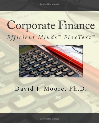 --- What is FlexText™?I have taught corporate finance at the introductory undergraduate, intermediate undergraduate, and introductory MBA levels. While teaching those courses I noticed significant overlap in the material covered. For instance, net present value is covered at all levels. To promote efficiency I have combined my lecture notes from all three levels into this single text.FlexText™ is a new flexible textbook approach for multilevel instruction. With this "FlexText™ - Corporate Finance" book professors can choose their own subset of chapters. In so doing professors and students have a consistent text for corporate finance instruction at multiple levels. On my website, www.efficientminds.com, you will find sample 16-week lecture schedules. The sample lecture schedules are for multiple levels of corporate finance and cross reference the appropriate subset of chapters in this book.--- About this bookIt is my wish that these notes equip the reader in at least three ways. First, I would like the reader to gain knowledge in identifying ways to improve operating, investing, and financing activities. Second, I would like the reader to learn the use of tools for project selection, project risk assessment, and project risk management. Third, I would like the reader to become familiar with the implications of debt vs. equity financing.Throughout the notes you will find questions to check your understanding of the material. These questions foster classroom interaction. Also, I have intentionally left out numerical example details to encourage note taking during class. Numerical examples will be worked in class so you can fill in the blanks. So, be on the lookout for the \square symbol that indicates a numerical example is near.These lecture notes are organized into three parts. Part I covers the fundamental concepts of financial management including the financial manager's role, corporate governance, the time value of money, bond valuation, stock valuation, and risk and return. Part II utilizes the concepts of Part I to analyze and forecast forecast financial statements, compute the cost of capital, and to increase awareness of the debt vs. equity choice.While Part II is focused on broader issues in corporate value, Part III is focused on project selection concepts. Part III includes detailed discussions on project selection criteria, project risk assessment, and managing project risk using real options.Thank you for purchasing this text. Let's learn how to make our corporations more valuable...