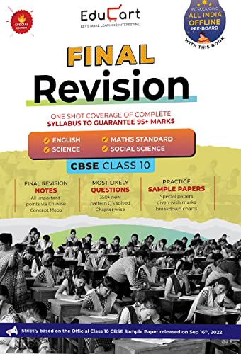 Class 10 chapter-wise Science + Mathematics + Social Science + English revision maps. Chapter-wise most likely questions. 2 additional practice papers.Educart Science + Mathematics + Social Science + EnglishFinal Revision Features