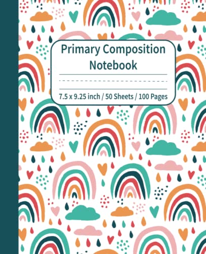 Rainbow Primary Composition Notebook: Draw and Write, notebook with Dotted Midline and Picture Space