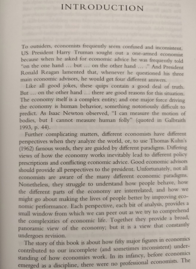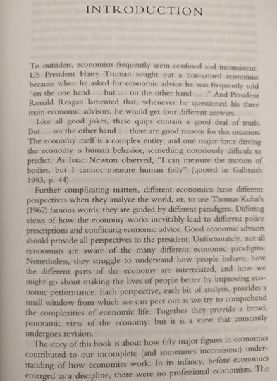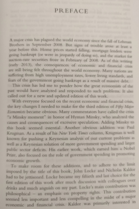 This is the third edition of this interesting and nicely layed-out book about the lives and miracles of fifty economists. As it happens in any "The X major Y" books, not everyone is included (only 50 LOL).