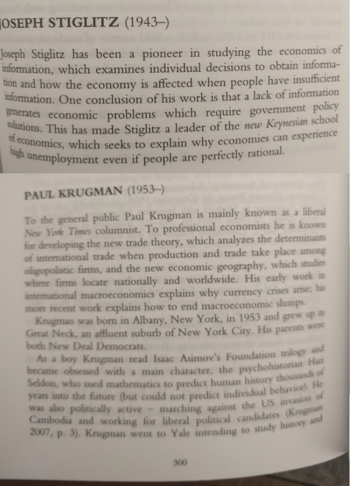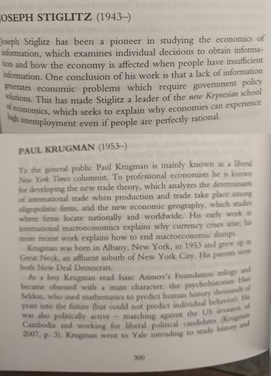 I liked the shortness of the essays, and the fact that they introduced new names in spite of eliminating people that in the past they deemed esential to their picture of the economic world.