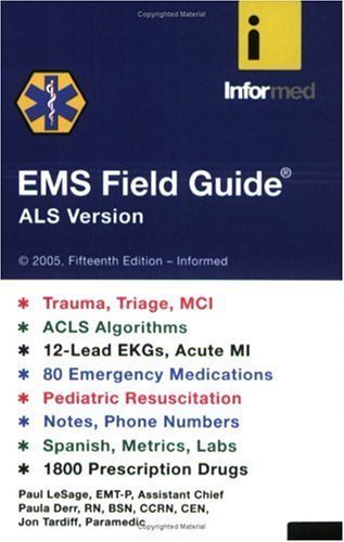 The 18th edition EMS Field Guide ALS Version contains a newly updated drug section along with enhanced illustrations for a better understanding of the material. This 3"x5" pocket-sized guide has color-coded tabs so that paramedics, nurses and physicians can easily look up patients' medications, check drug doses, quickly interpret 12-Lead EKGs and review the latest CPR and ACLS algorithms from the AHA. All Informed guides are waterproof, alcohol-fast and 'street tough'. Digital and iPhone application versions of this guide are now available for use on both handheld devices and computers.