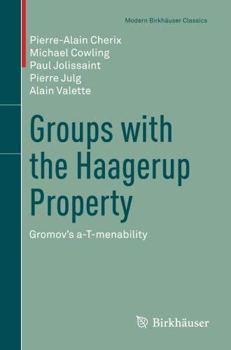 A locally compact group has the Haagerup property, or is a-T-menable in the sense of Gromov, if it admits a proper isometric action on some affine Hilbert space. As Gromov's pun is trying to indicate, this definition is designed as a strong negation to Kazhdan's property (T), characterized by the fact that every isometric action on some affine Hilbert space has a fixed point.The aim of this book is to cover, for the first time in book form, various aspects of the Haagerup property. New characterizations are brought in, using ergodic theory or operator algebras. Several new examples are given, and new approaches to previously known examples are proposed. Connected Lie groups with the Haagerup property are completely characterized.