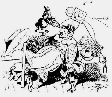 »Ist fatal!« – bemerkte Schlich – »Hehe! aber nicht für mich!« [ “This is bad!” says Sly, “he! he! Very bad, but not for me!” ]