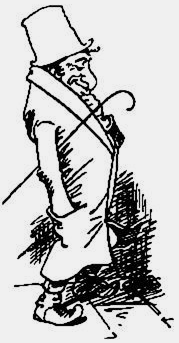 Kurz die Hose, lang der Rock, Krumm die Nase und der Stock, Augen schwarz und Seele grau, Hut nach hinten, Miene schlau – So ist Schmulchen Schievelbeiner. (Schöner ist doch unsereiner!) [ Breeches short and long surtout, Crooked nose and cane to suit, Gray of soul and black of eye, Hat slouched back, expression sly— Such is old Sol Shuffleshins; How complacently he grins! ]