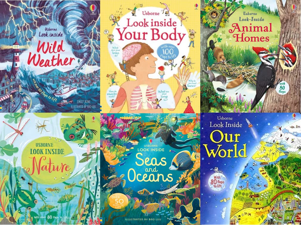 It's including: 1. Look Inside Wild Weather 2. Look Inside Your Body 3. Look Inside Animal Homes 4. Look Inside Nature 5. Look Inside Seas and Oceans 6. Look Inside Our World