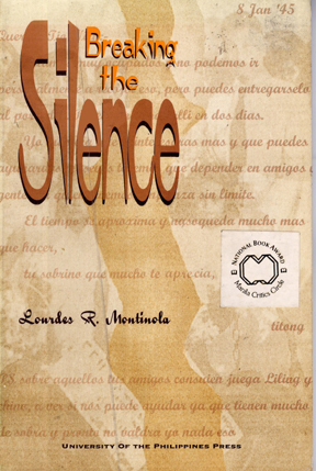Breaking the Silence is a story reluctantly told by the author, a survivor of Japanese atrocities during the liberation of Manila. It was first partially recounted to Nick Joaquin who had been commissioned by the author's family and the Far Eastern University to write a biography of Dr. Nicanor Reyes, university founder and first president. Nick Joaquin's book was launched on February 11, 1995, by coincidence almost exactly 50 years after Dr. Reyes and his family had perished. A memorial to the non-combatant victims of the battle for the liberation of Manila was inaugurated in the Plazuela de Sta. Isabel in Intramuros on February 18. The author and other survivors belonging to Memorare-Manila raised funds for the monument. They were asked to surmount the pain and anguish of reliving their experiences, and to tell the story of the innocent civilians who had died in the battle. This is Lourdes R. Montinola's sharing of her story.