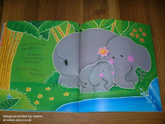 This is a story about a baby elephant's quest to find out what the colour of love is. He meets a lot of animals on the way.It's brilliantly vibrant illustrations captivate the very young. As the title suggests, children learn about colours. The story has a delightful rhythm with repetition and words that rhyme with the names of different colours. For slightly older children it encourages participation as they try and guess the colour of love. Ideally suited as a book to be read to children in the EYFS, confident readers in KS1 would enjoy reading it themselves. I enjoyed reading this book to my 4 year old. I think it is wonderful. All the more so becaue she loves it too.