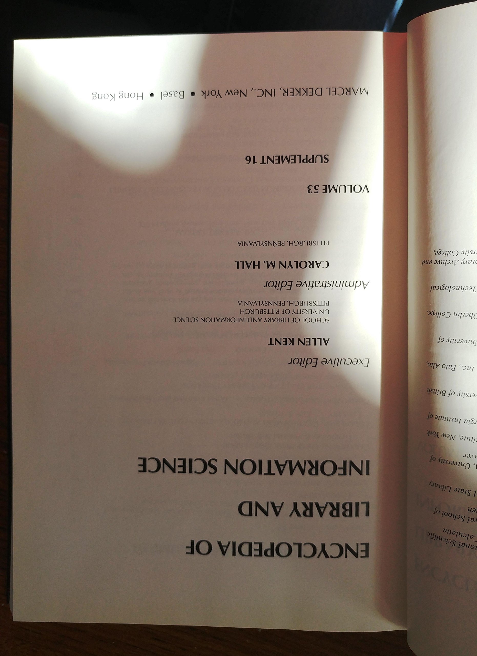 The Encyclopedia of Library and Information Science provides an outstanding resource in 33 published volumes with 2 helpful indexes. This thorough reference set--written by 1300 eminent, international experts--offers librarians, information/computer scientists, bibliographers, documentalists, systems analysts, and students, convenient access to the techniques and tools of both library and information science. Impeccably researched, cross referenced, alphabetized by subject, and generously illustrated, the Encyclopedia of Library and Information Science integrates the essential theoretical and practical information accumulating in this rapidly growing field.
