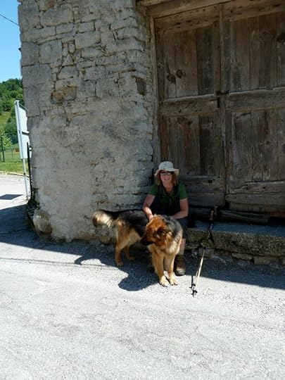 I especially enjoyed aspects of his walk that mirrored some of my own walking experiences. At the very beginning of his walk, for example, he tells a tale of petting a dog who then stuck to him for the rest of the day. We had the very same experience this summer on a two-week hike in Slovenia. We met this friendly guy: