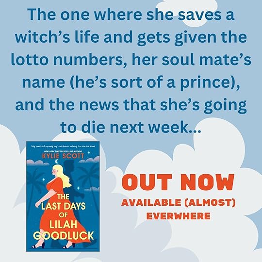 One more thing that I have to mention because I HAVE TO. It's one of my top pet peeves in books. Silly names. This is a book about a woman who wins the lottery, meets her soulmate, and is predicted to die all in the same week. Her name? Lilah Goodluck. 😑 I mean, it's no Lily Blossom Bloom, but it's pretty bad.