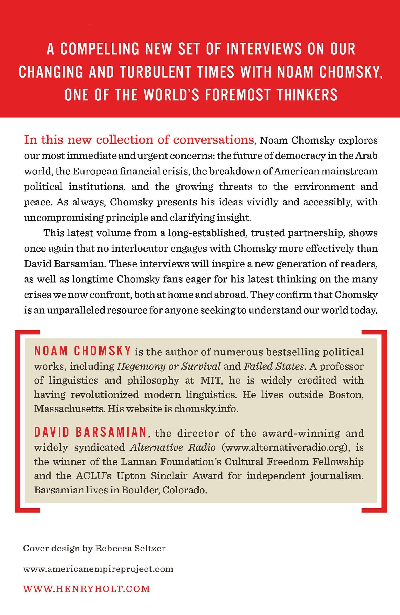 As a writer, Barsamian is best known for his series of interviews with Noam Chomsky, which have been published in book form and translated into many languages, selling hundreds of thousands of copies worldwide.