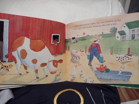 This is a cute, if silly, book about a bee giving a strange sort of cold to a cow, who passes it onto a pig, who passes it onto a duck, etc. until all the animals are suddenly making the wrong sounds. The farmer then gives food to the animals based on the sounds they make, so he gives the cow honey.
