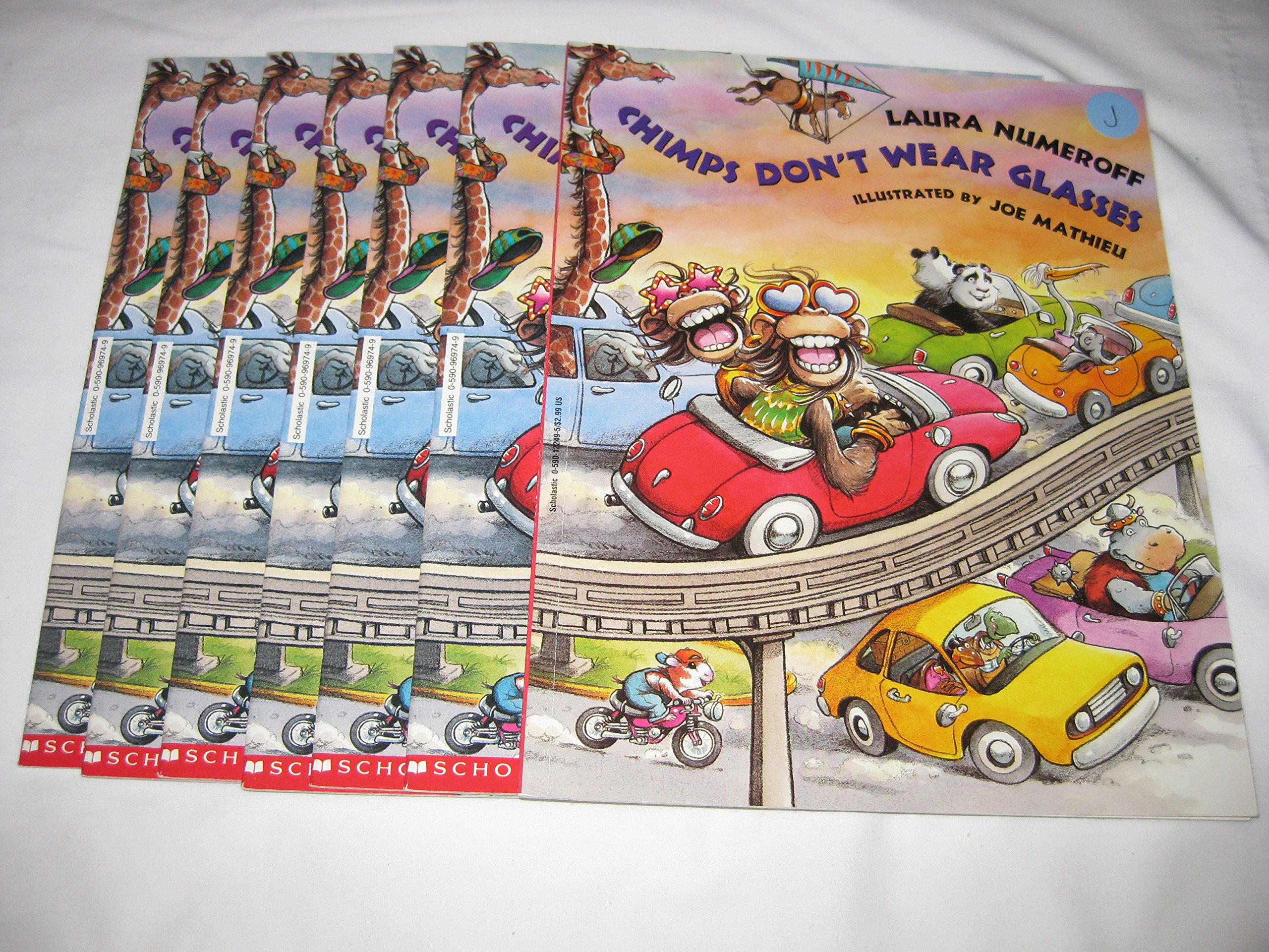 CHIMPS DON'T WEAR GLASSES AND ZEBRAS DON'T COOK AND YOU WON'T SEE A KANGAROO READING A BOOK. The team that created Dogs Don't Wear Sneakers returns with more animals in preposterous predicaments. Laura Numeroff's silly selection of animal antics and Joe Mathieu's zany zoo art will have you in stitches. Giraffes that drive? Reindeer at a square dance? What amazing animal antics can you think up? Fountas & Pinnell Reading Level J.