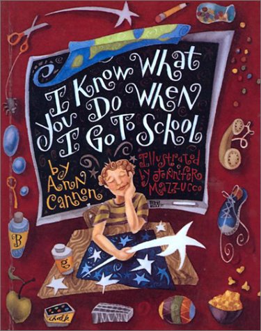 A boy imagines what his mom and little brother do while he's away at school. I loved the story and the tone—it's just fun. I have minor complaints about the hard-to-read fonts the type is set in, but don't let this scare you away from such an enjoyable book.