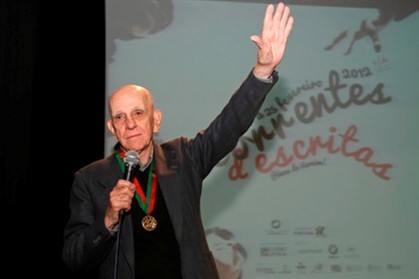 Rubem Fonseca ao receber em Portugal - o Prémio Literário Casino da Póvoa/Correntes d´Escrita em 2012 e a medalha de mérito cultural.
