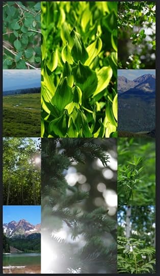 GREEN Green is the color of my song right now, my poem, my novel, The color of freshness, spring, summer, the color Of life, of being alive, of eating the greenest of vegetables, Touching the greenest of leaves and needles and grass, To see and revel in the green aspen leaves, the green Of the lake reflecting the glorious forest, the green Of my love’s eyes, the green of the sea glass dangling From my ears, burnished by time and waves to translucence, To the green they talk of when they talk about being new, trying Something new, stretching your soul.