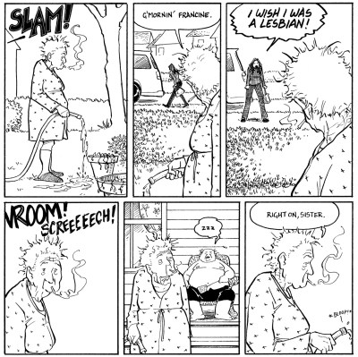 Following the examples of independent comic creators such as Dave Sim and Jeff Smith, he decided to publish Strangers in Paradise himself through his own Houston-based "Abstract Studios" imprint, and has frequently mentioned a desire to do a syndicated cartoon strip in the authors notes at the back of the Strangers in Paradise collection books. He has also mentioned his greatest career influence is Peanuts' Charles Schulz.[1] Some of Moore's strip work can additionally be found in his Paradise, Too! publications.