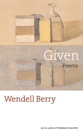 -This is my first Wendell Berry read. This collection of poetry, "Given," is centered around his belief in the beauty of a simple life with a thematic connective tissue of gratitude for the natural and spiritual gifts of a life well-lived. I am a total poetry rube, so I will mostly share a few quotes that I loved. This was an excellent introduction to his work, and I will continue to read Berry.