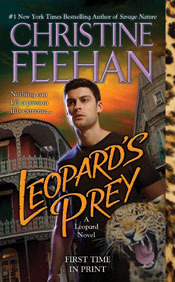 Christine Feehan has always been a must read author for me. I didn't like Paranormal romance until I read her Dark Series, and I fell in love. Then when she started on this shifter series of Leopards, I was captivated. I would say that Leopard's Prey is going to be added to the top of the list of favorites. From the previous book Savage Nature, we are introduced to the Boudreux family, and we see quite a bit of Remy, when I heard that the next book would be his story, I learned that patience was NOT one of my virtues. Now for those of you who haven't read this series yet, it isn't mandatory to read the previous books, but I would recommend reading Savage Nature before you read this.
