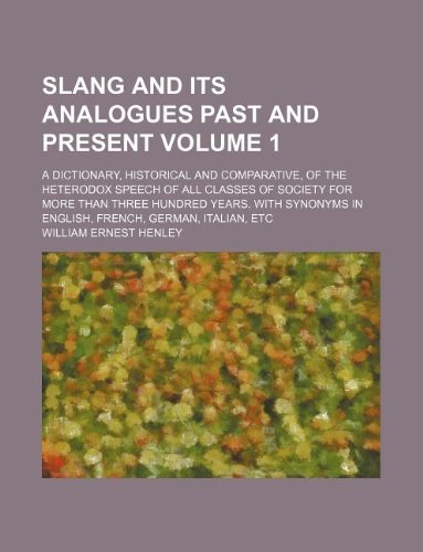 Slang and its analogues past and present Volume 1 ; A dictionary, historical and comparative, of the heterodox speech of all classes of society for ... in English, French, German, Italian, etc